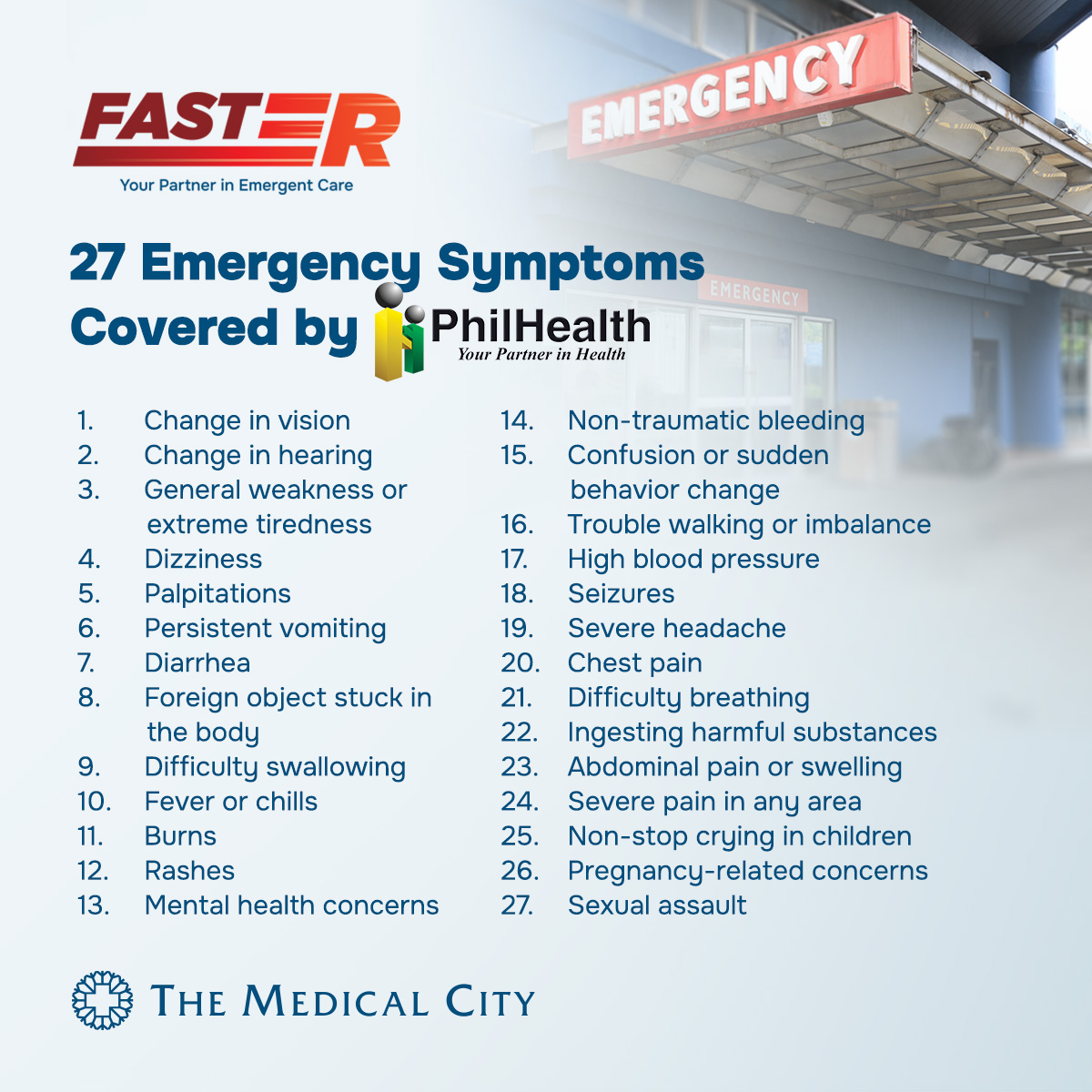 27 urgent symptoms covered by PhilHealth Benefits.